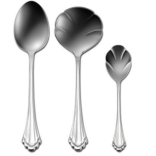 Bold floral details highlighting a fiddleback shape give Louisiana a nostalgic appeal and a southern charm. Great for family dining or entertaining, combining durability with a lustrous finish. Oneida, the leading name in flatware, has been setting tables for generations. Oneida's highest quality stainless flatware, the 3-piece hostess set includes: large serving spoon, gravy ladle and sugar spoon. Read moreRelateItems